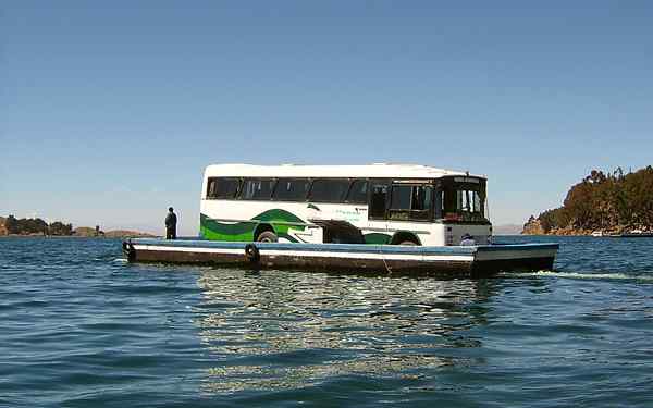 und da schwimmt unser Bus mit Gepäck auf dem Titicacasee (auf dem Weg nach La Paz)