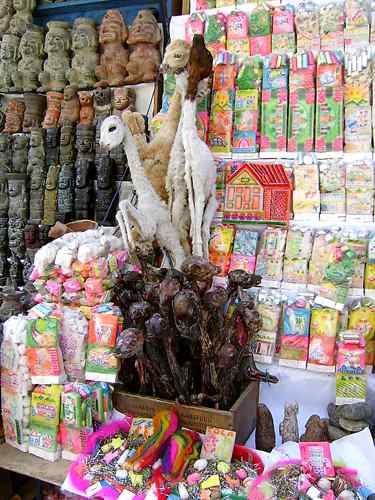 Lamaföten und andere Glücksbringer auf dem Hexenmarkt von La Paz