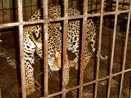 Jaguar bei einer Familie im viel zu kleinen Käfig :-(