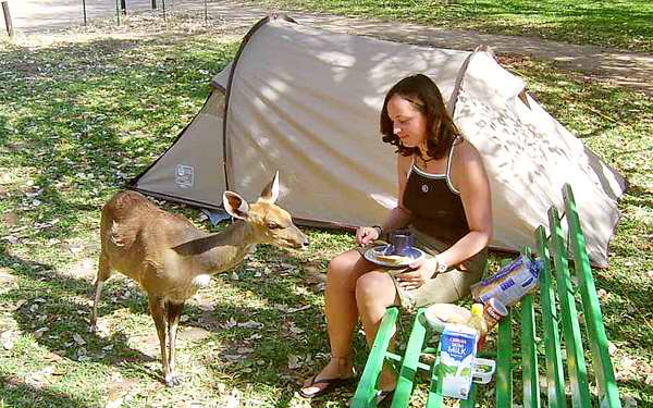 morgendlicher Besucher beim Frühstück im Camp