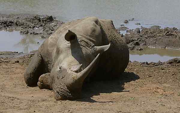 in der Mittagshitze wird im Schlamm Abkühlung gesucht