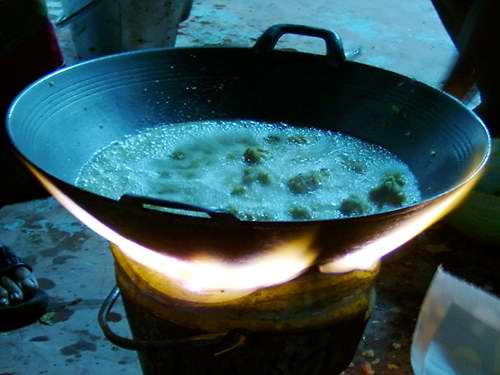 Frittieren im Wok, auf einfachem Kohleofen ...