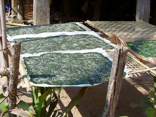 Seaweed wird getrocknet (schmeckt frittiert eigentlich ganz lecker!)