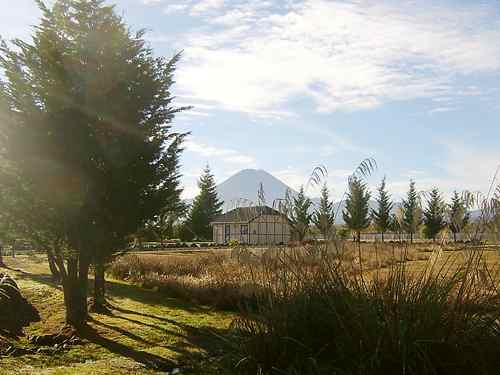 Blick von unserer Unterkunft auf den Mt. Ngauruhoe (oder evtl. auch Mt. Tongariro)