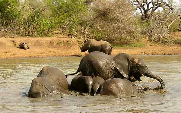 Nashörner vertrieben - nun kann die Elefantenherde plantschen!