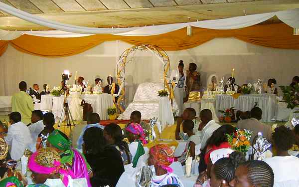 ...und eine festlich geschmückte Halle.